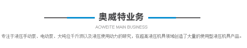 德州奧威特液壓機(jī)械有限公司有多年的超高壓元件及設(shè)備制造經(jīng)驗(yàn),依托德州精湛的制造工藝和不斷創(chuàng)新的技術(shù),專(zhuān)注于液壓手動(dòng)泵、電動(dòng)泵、大噸位千斤頂及拆裝科技以及液壓使用動(dòng)力的研究,在超高液壓機(jī)具領(lǐng)域不斷研發(fā),創(chuàng)造了大量的使用型液壓機(jī)具產(chǎn)品。